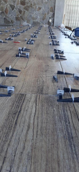 • Introdu distantierii sub marginile placilor inainte de fixare