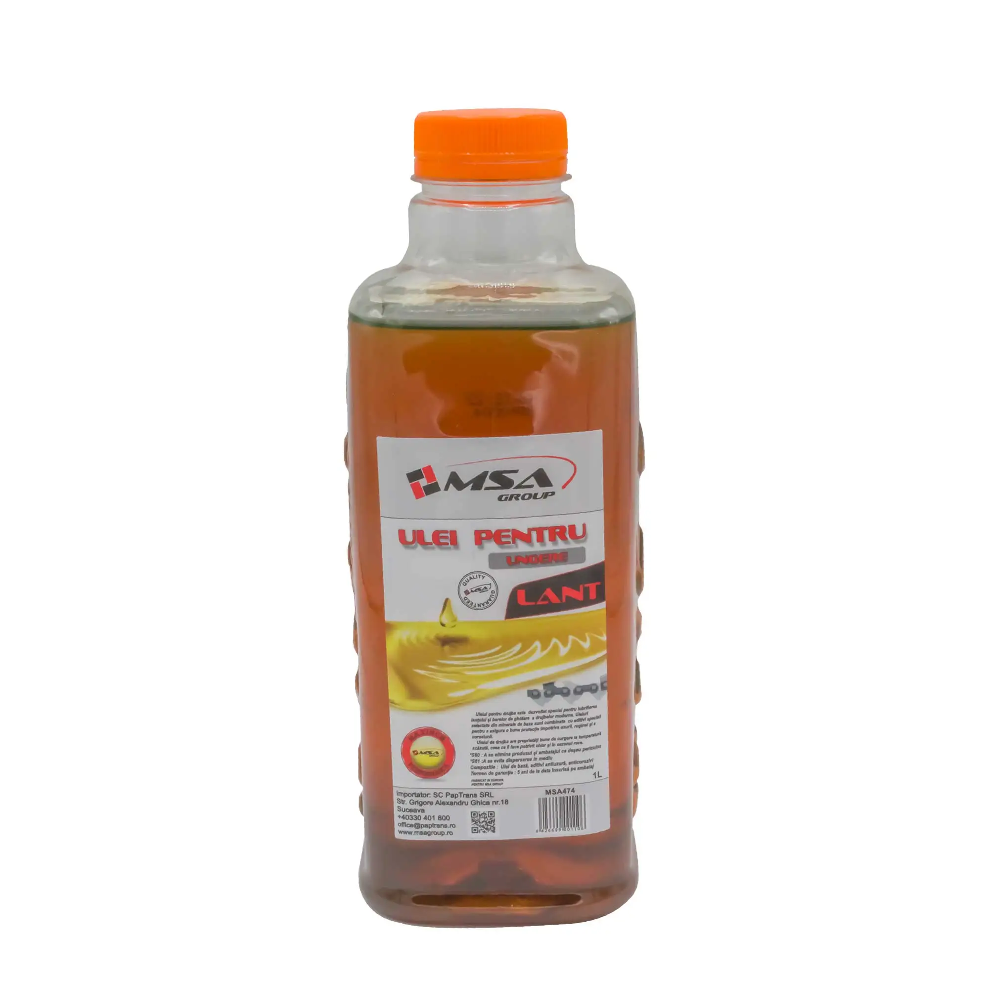 Uleiul pentru ungere lant este special conceput pentru a oferi lubrifiere eficienta lanturilor de drujba, prelungind durata de viata si imbunatatind performanta acestora.