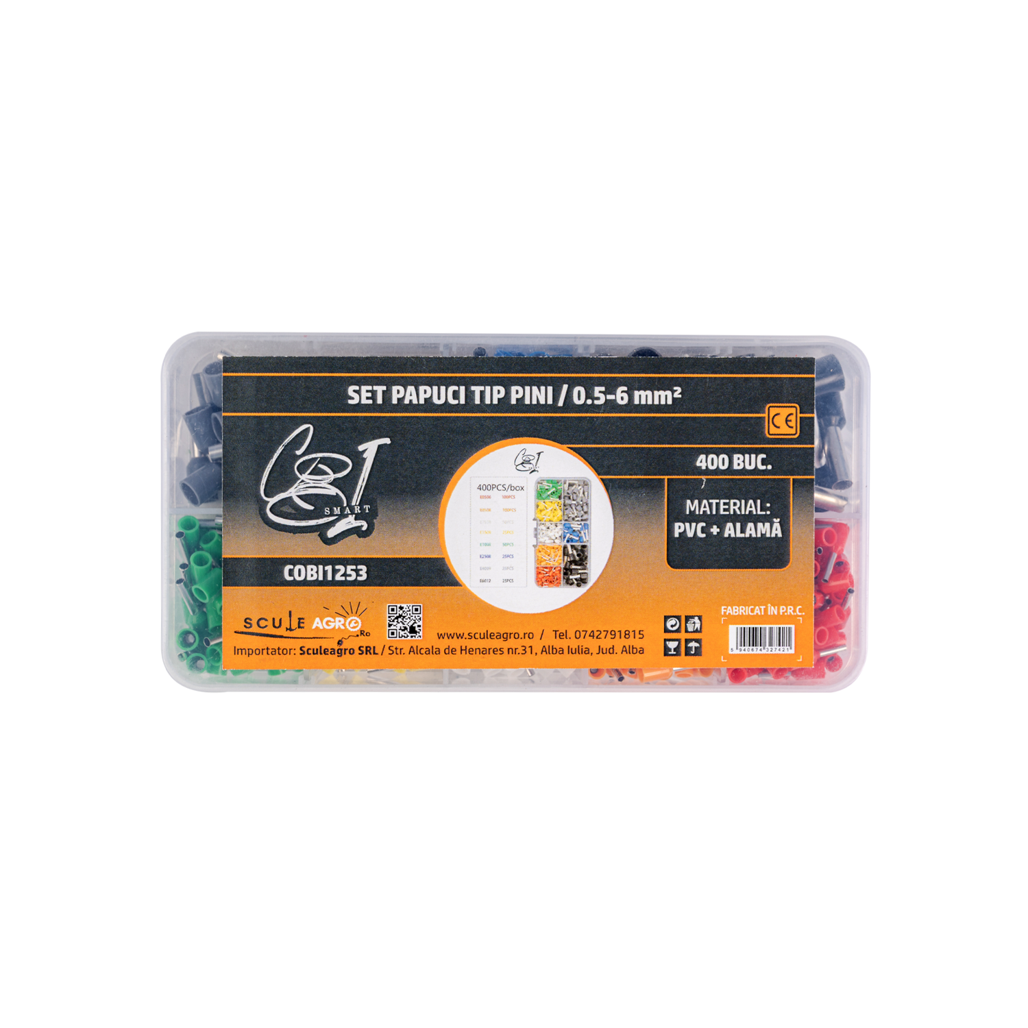 Setul de 400 terminale cu pini COBI SMART® este conceput pentru realizarea conexiunilor electrice rapide si fiabile. Terminalele sunt fabricate din alama conductoare si izolate cu PVC durabil, oferind o fixare ferma si siguranta sporita in utilizare. Sunt compatibile cu cabluri intre 0.5–6 mm² si se livreaza in 8 dimensiuni diferite, pentru adaptare usoara la orice aplicatie.