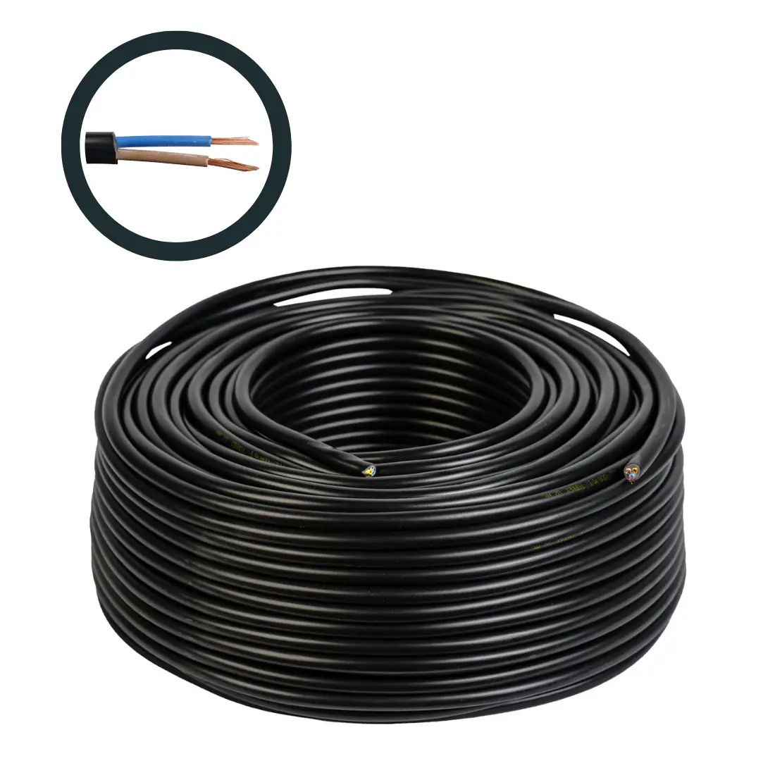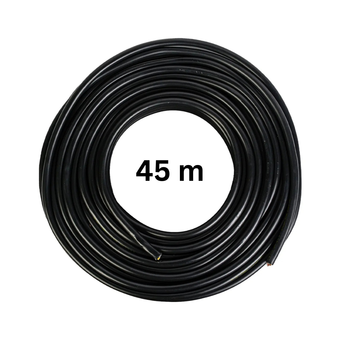 Cablu electric multifilar 2x2.5mm, cu o lungime de 45 metri și manta exterioară de culoare neagră, conceput pentru instalații electrice interioare de joasă tensiune, unde este necesară o secțiune mai mare pentru sarcini mai ridicate. Potrivit pentru alimentarea prizelor, aparatelor electrocasnice și sistemelor de distribuție electrică în clădiri rezidențiale și comerciale.