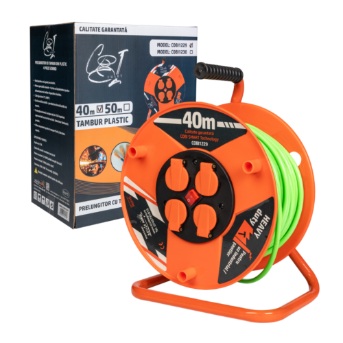 Prelungitorul cu tambur COBI SMART® este conceput pentru alimentarea echipamentelor electrice la distante mari, oferind siguranta si eficienta in utilizare. Cu o lungime de 40 m si un cablu 3x2.5 mm², permite conectarea simultana a mai multor dispozitive datorita celor 4 prize Schuko integrate.