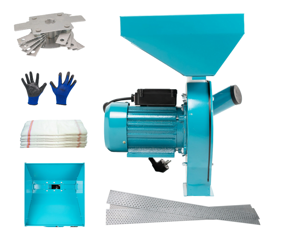 Moara electrica 2 in 1 Broman dispune de un motor puternic de 4.2 kW si o turatie de 3200 rpm, cu o capacitate de productie de pana la 300 kg/h. Echipata cu un tambur ce include 20 de ciocanele, aceasta moara este ideala pentru macinarea cerealelor precum grau, porumb, secara, soia, dar si pentru procesarea stiuletilor de porumb intregi.