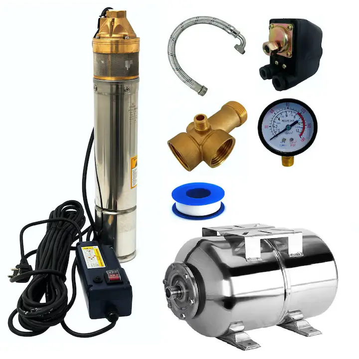 Acest kit hidrofor cu rezervor de 50 L este echipat cu o pompa submersibila inox 4SKM-100, oferind performanta si fiabilitate pentru diverse aplicatii de alimentare cu apa. Sistemul asigura un debit constant si presiune ridicata, fiind ideal pentru uz casnic si industrial.