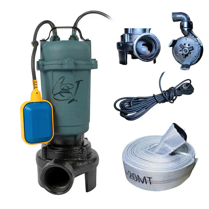 Acest pachet complet contine o pompa pentru apa murdara WQCD cu tocator si plutitor integrat, proiectata pentru gestionarea lichidelor cu impuritati si materiale solide. Include un furtun pompier profesional rezistent, perfect pentru utilizari intensive.