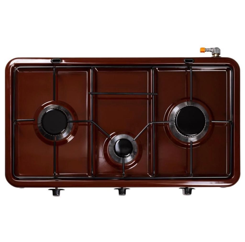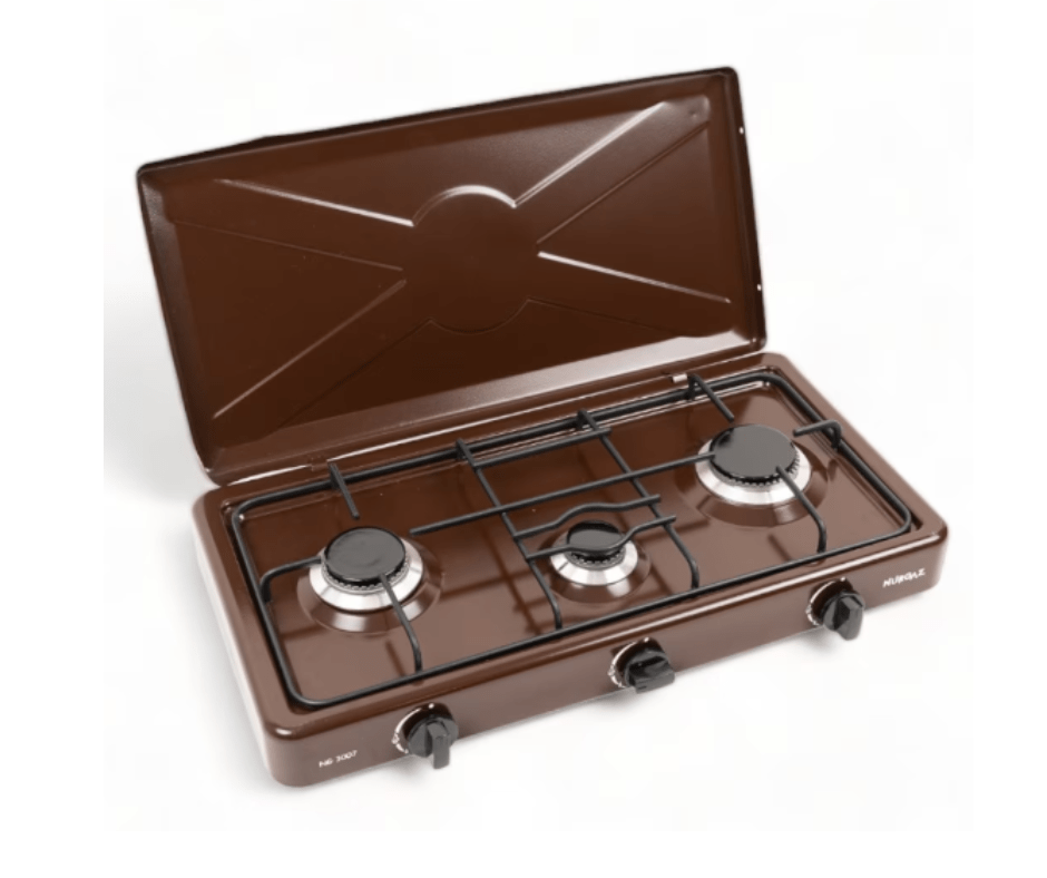 Aragazul maro cu plita si 3 ochiuri din gama COBI SMART® combina eficienta termica, designul modern si siguranta in utilizare. Conceput pentru alimentare la butelie, acest model ofera o putere totala echilibrata si este ideal pentru gatit zilnic sau activitati in aer liber.