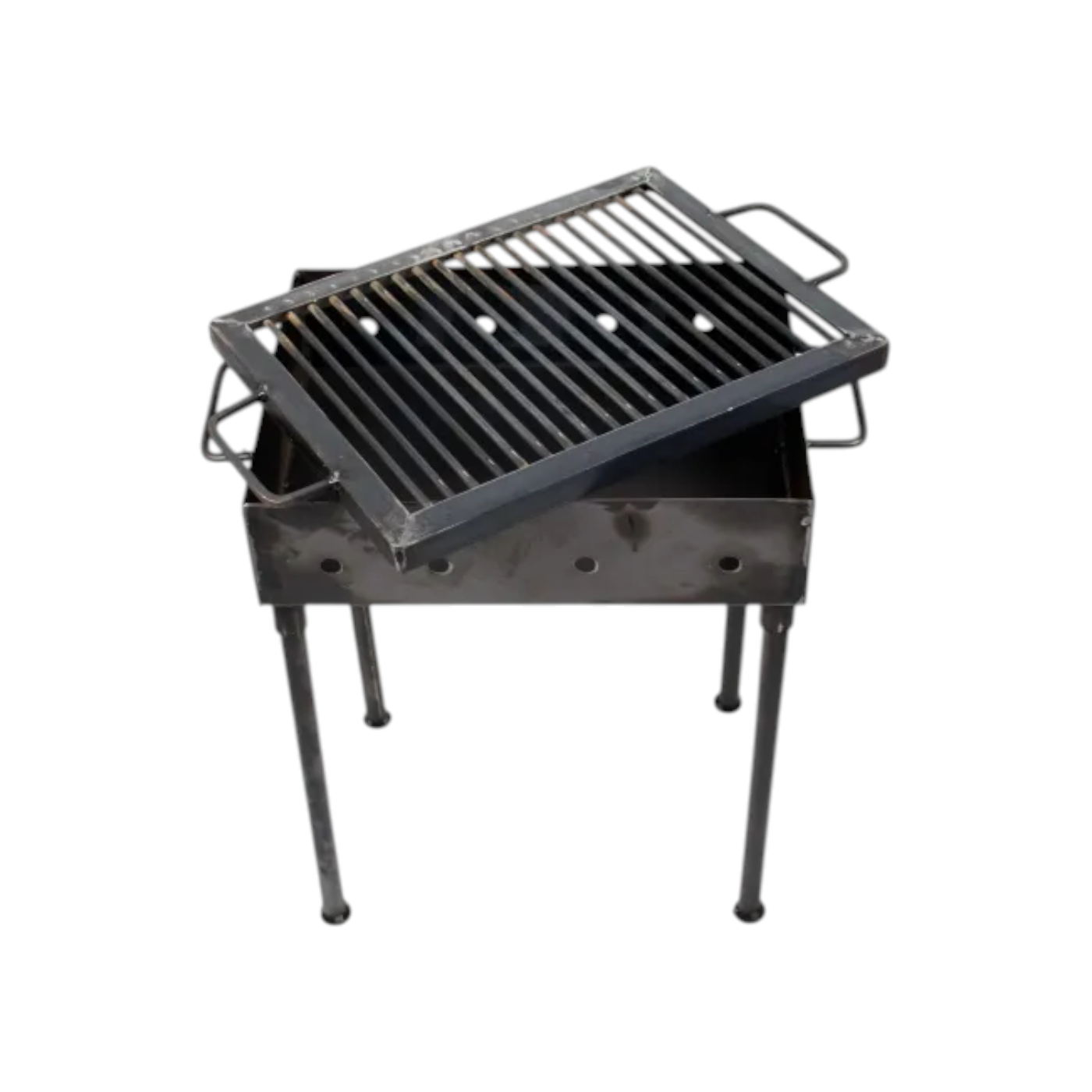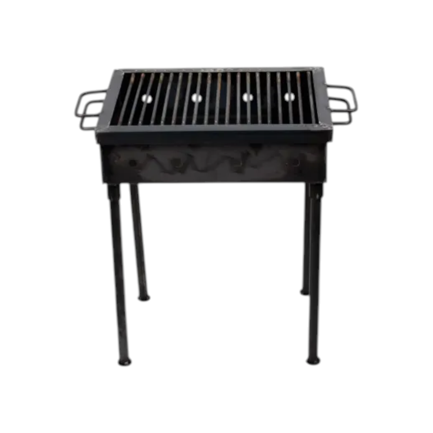Gratar de picnic cu dimensiuni 40x30 cm si inaltime 50 cm, realizat din metal de 2.5 mm. Compact, rezistent si ideal pentru gatit in aer liber.