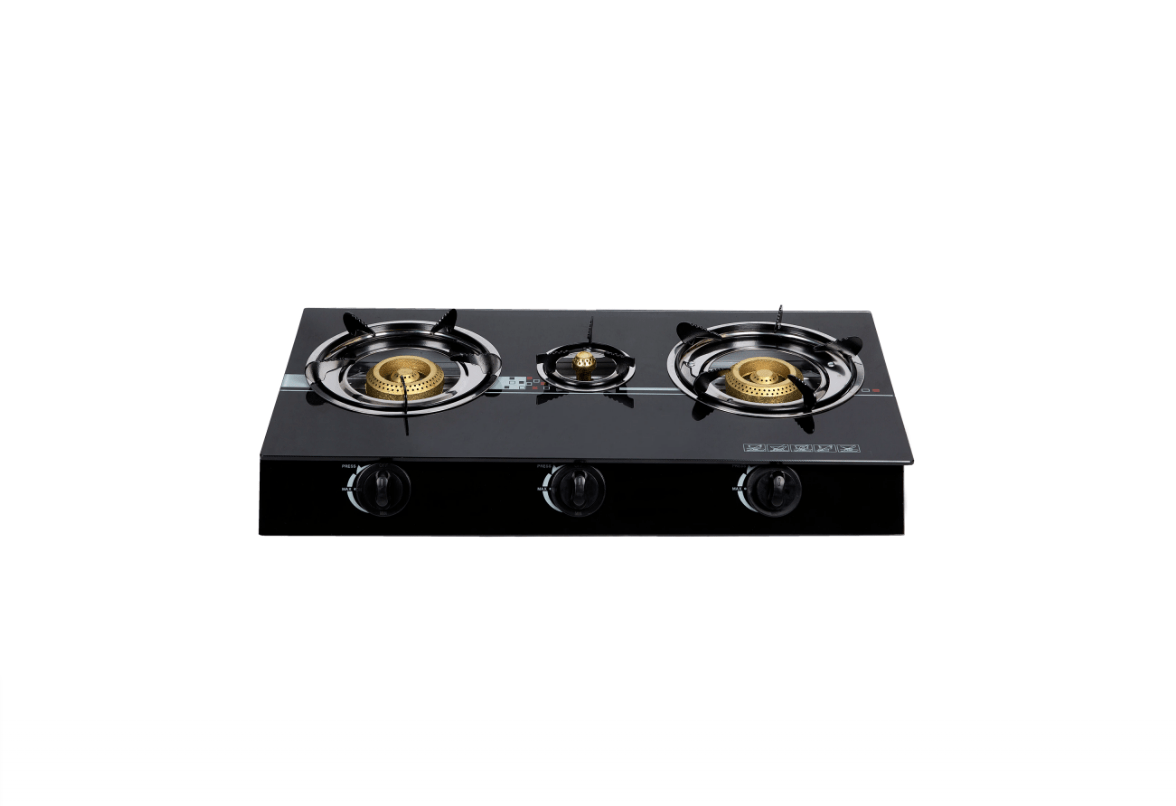 Aragaz portabil cu 3 ochiuri, suprafata din sticla termorezistenta si aprindere piezo-electric. Usor de folosit si transportat, ideal pentru camping si gatit outdoor.