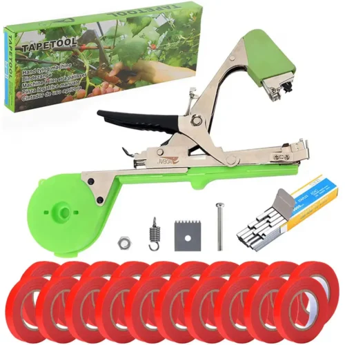 Pachet complet pentru legat vita de vie, legume si pomi fructiferi, ideal pentru utilizare rapida si eficienta in gradini si livezi. Include toate accesoriile necesare pentru legarea usoara cu aparat specializat.