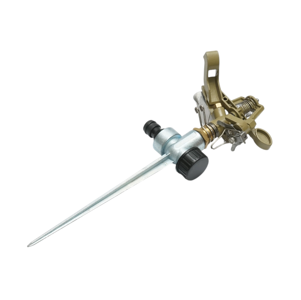 Sistemul de rotatie 360° permite distribuirea uniforma a apei pe o suprafata larga, asigurand o udare eficienta si economica. Designul compact si robust il face potrivit pentru diverse sisteme de irigare.