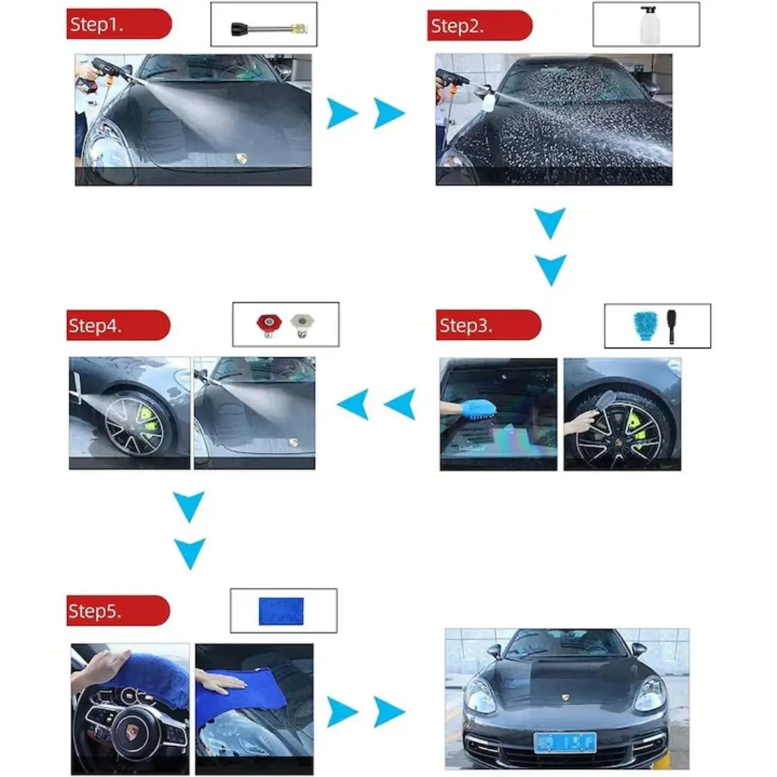 ✓ Complet echipat: duze, furtun, lance si recipient spuma